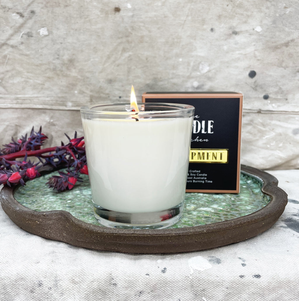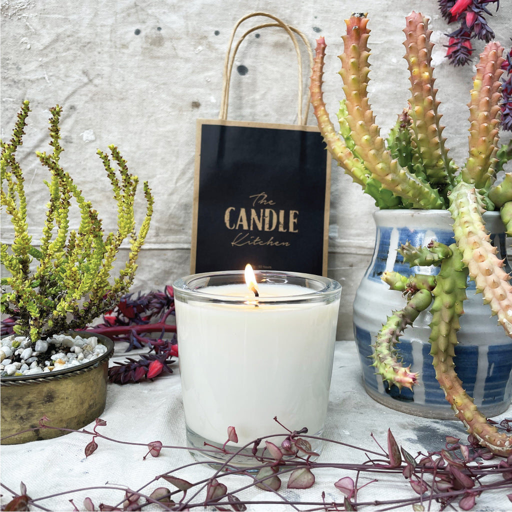 Handcrafted 100% Pure Natural soy wax candle with a braided cotton wick, made on the South Coast of Australia. In chunky glass tumblers, 8mm thick glass, a solid 10cm in height with a rim radius of 10cm Burn time approx 50hrs