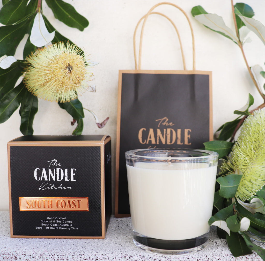 Handcrafted 100% Pure Natural soy wax candle with a braided cotton wick, made on the South Coast of Australia. In chunky glass tumblers, 8mm thick glass, a solid 10cm in height with a rim radius of 10cm Burn time approx 50hrs